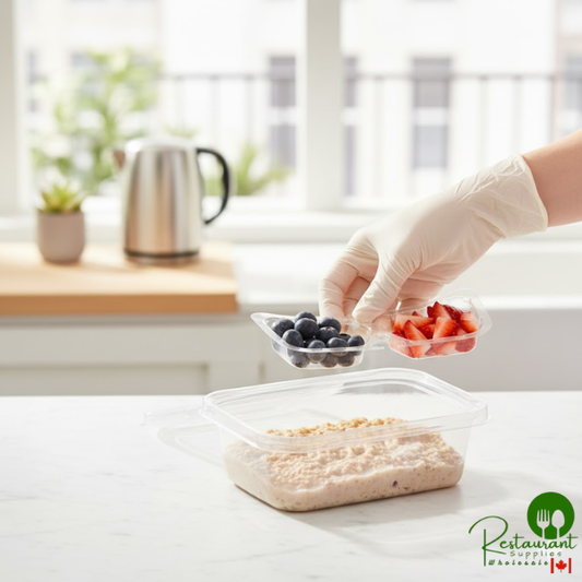 • Inline Plastics Safe-T-Chef 12 oz. Tamper-Resistant, Tamper-Evident Square Hinged Container with Dome Lid - 264/Case