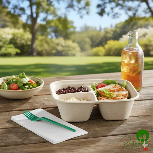 • World Centric 48 oz. 3-Compartment Compostable Fiber Container - 300/Case