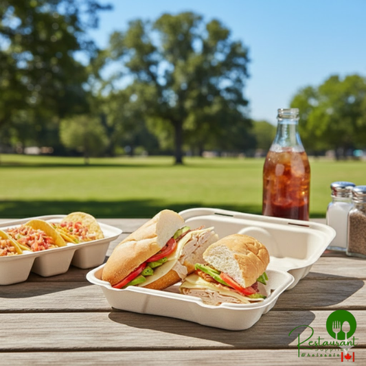 • World Centric 9" x 6" x 3" Compostable Fiber Hoagie Clamshell with Leaf Plus - 500/Case