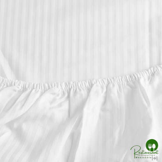 • Garnier-Thiebaut Riviera T-300 80" x 78" x 17" White Tone-on-Tone Stripe King Size Sateen Weave 100% ELS Cotton Fitted Sheet - 20/Case