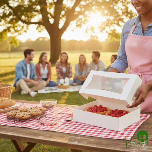 • 11" x 8" Large Collapsible Balsa Wood Catering Box with Attached Window Lid - 50/Case