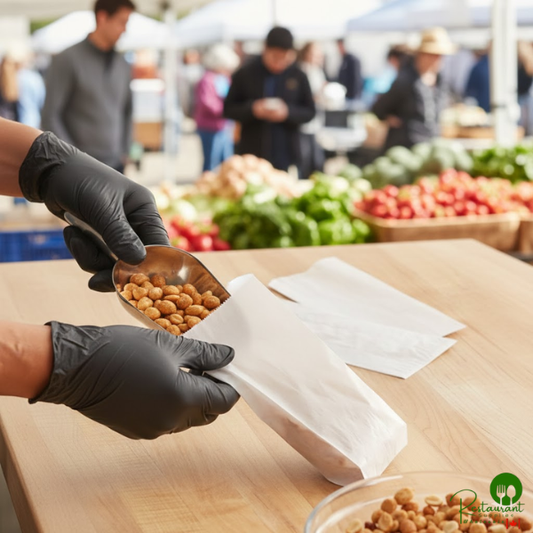 • Sabert 20006 10" x 5" x 13" 1 Meal Tamper-Evident Kraft Paper Delivery Bag - 250/Case
