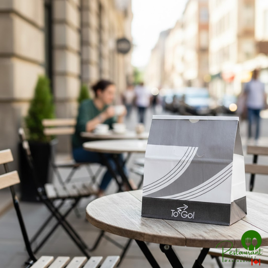 • Bagcraft 8 1/4" x 5 1/4" x 8 3/4" White Printed To-Go Vented Meal Bag with Tin Tie Closure - 250/Case