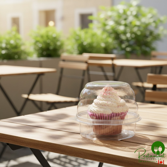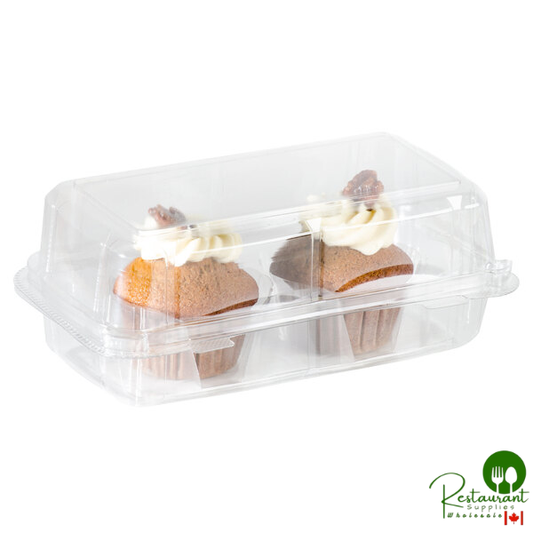 • Inno-Pak 8" x 5 1/4" x 3 13/16" Dome 2-Compartment Hinged Clear Cupcake Container - 220/Case
