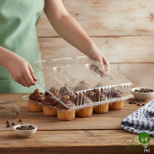 • 12-Cup Hinged PET Plastic Cupcake / Muffin Container By Prime - 100/Case