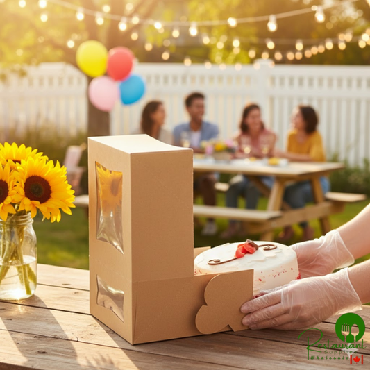 • 8" x 8" x 4" Kraft Auto-Popup Window Cake / Bakery Box By Prime - 150/Case