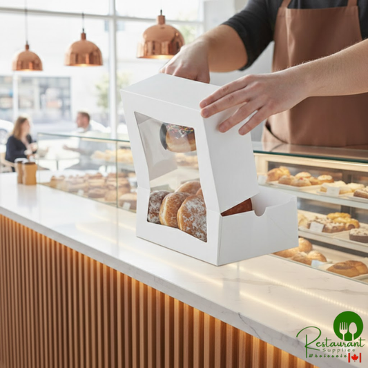 • 9" x 4" x 3 1/2" White Customizable Auto-Popup Window Donut / Bakery Box By Prime- 200/Case