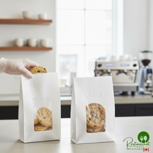 • 6" x 12 1/2" 8 lb. White Paper Cookie / Coffee / Donut Bag with Window By Prime - 500/Case