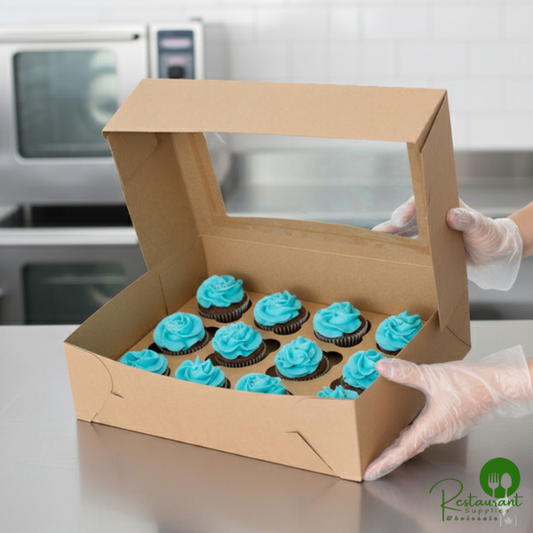 • 14" x 10" x 4" Kraft Window Cupcake / Muffin Box with 12 Slot Reversible Insert By Prime - 10/Pack