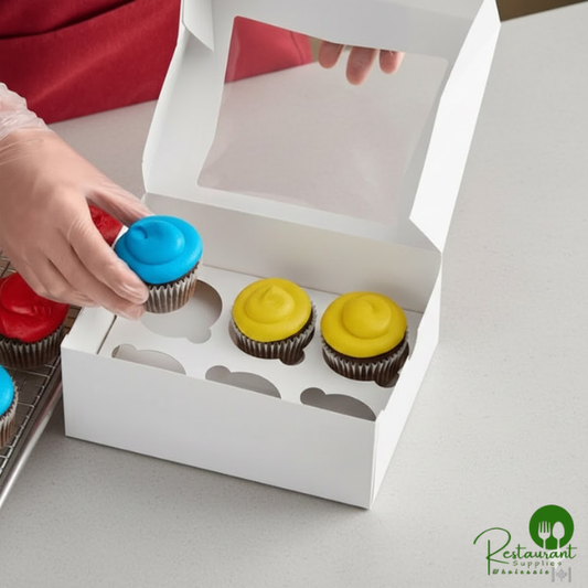 • 9" x 7" x 3 1/2" White Auto-Popup Window Cupcake / Muffin Box with 6 Slot Reversible Insert By Prime - 10/Pack