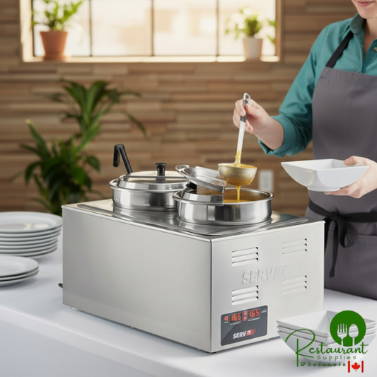 • ServIt Twin Well 7.5 Qt. Countertop Food Warmer with Digital Controls, 2 Insets, 2 Covers, and 2 Ladles - 120V, 1500W