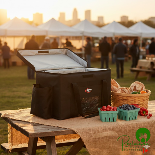 • Sterno 24" x 16" x 14" Large Black Nylon Insulated Catering Food Carrier 70512