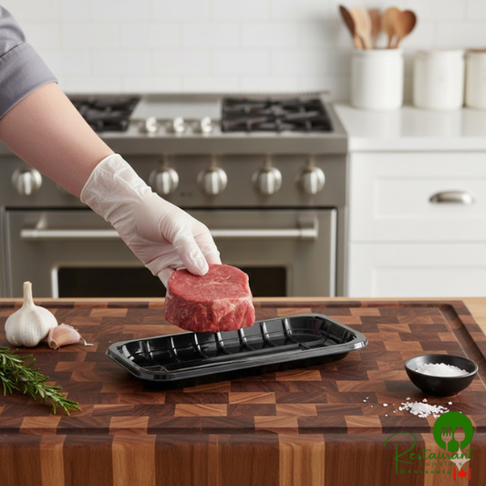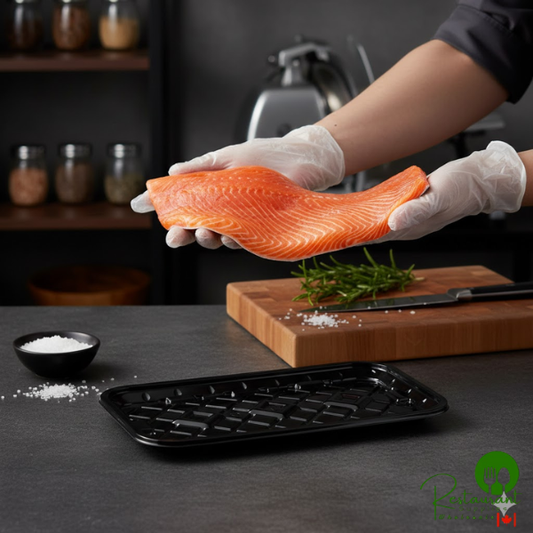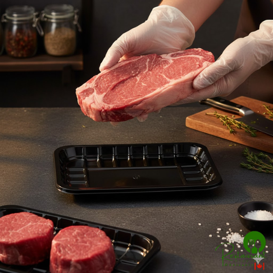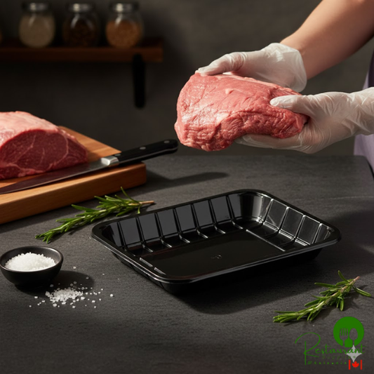 • CKF 86570 (#8DP) 5 15/16" x 8 3/8" x 1 1/8" Black PET Plastic Meat Tray - 300/Case