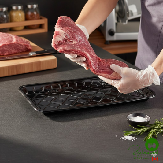 • CKF 87835 (#5S) Black Foam Meat Tray 10 1/4" x 5 3/8" x 5/8" - 500/Case