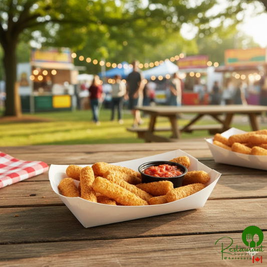 • Compostable White 2 Compartment Nacho / Food Tray By Prime - 300/Case