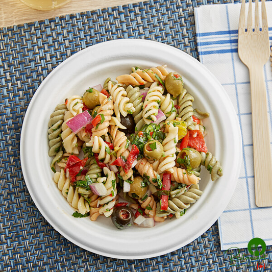 • World Centric 9" Round Compostable Plant Fiber Plate with LeafPlus - 1,000/Case