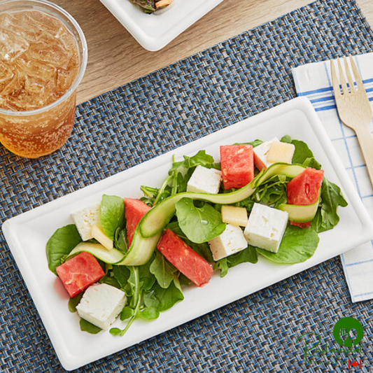 • EcoChoice 10" x 6" Compostable White Plant Fiber Rectangular Plate - 400/Case