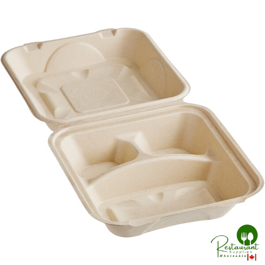 • World Centric 9" x 9" x 3" 3-Compartment Compostable PLA Lined Fiber Clamshell Container - 300/Case