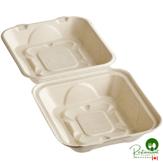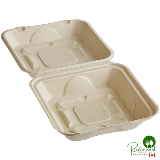 • World Centric 8" x 8" x 3" Compostable PLA Lined Fiber Clamshell Container - 300/Case