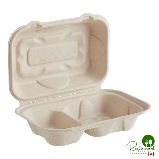 • World Centric Compostable PLA Lined Fiber Clamshell Hoagie Box 9" x 6" x 3" - 500/Case