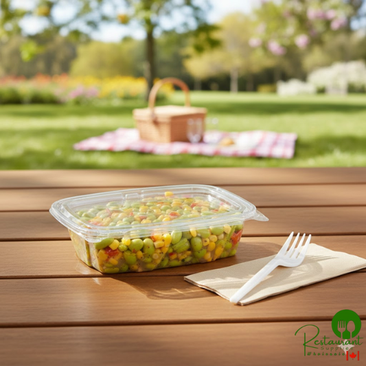 • Dart ClearPac SafeSeal 4 oz. Tamper-Resistant, Tamper-Evident Hinged Container with Flat Lid - 400/Case