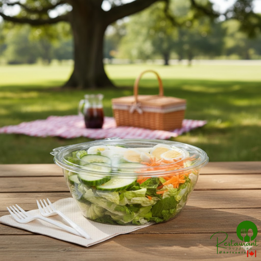 • Dart SafeSeal 48 oz. Plastic Tamper-Resistant, Tamper-Evident Bowl with Flat Lid - 100/Case