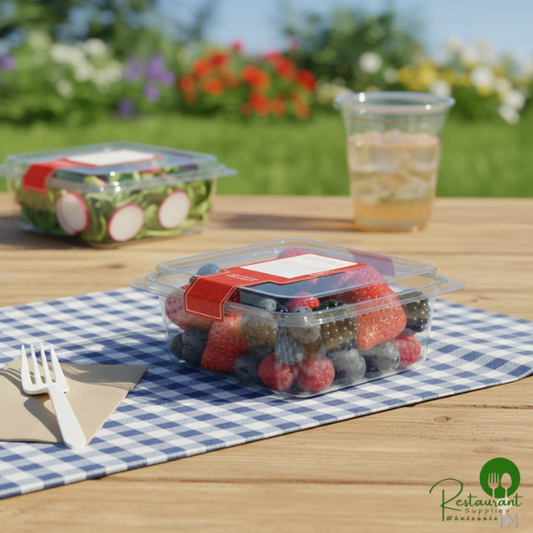 • 16 oz. Clear RPET Shallow Hinged Deli Container By Prime - 200/Case