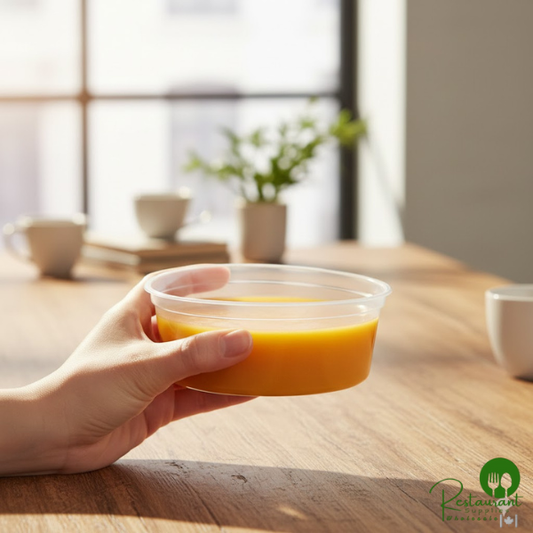 • 8 oz. Customizable Microwavable Translucent Round Deli Container and Lid Combo Pack By Prime - 250/Case