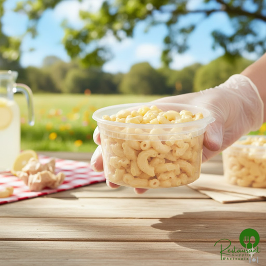 • 16 oz. Customizable Microwavable Translucent Round Deli Container and Lid Combo Pack By Prime - 250/Case