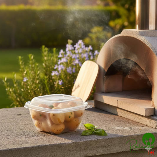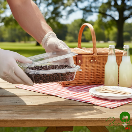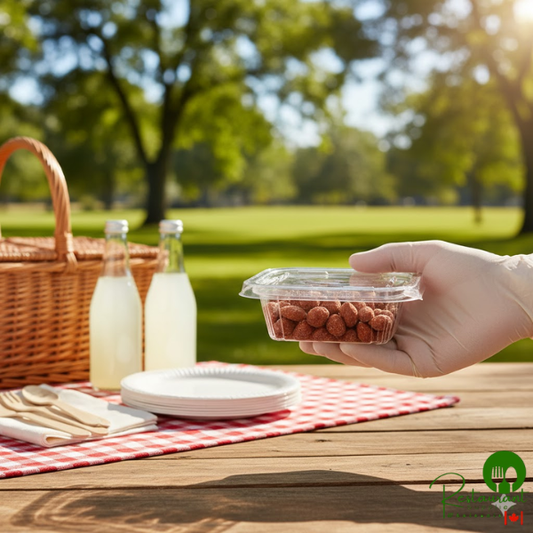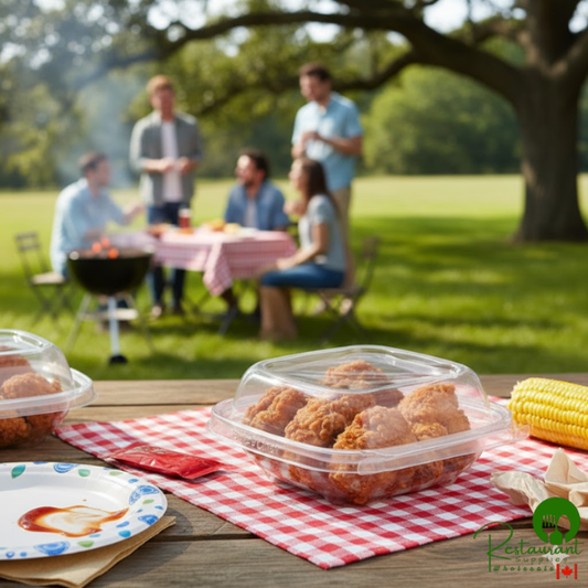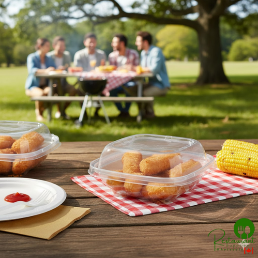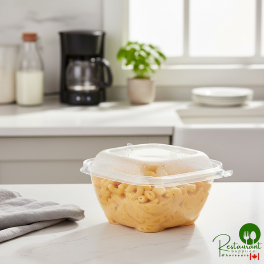 • Inline Plastics Safe-T-Chef 12 oz. Tamper-Resistant, Tamper-Evident Square Hinged Container with Dome Lid - 264/Case