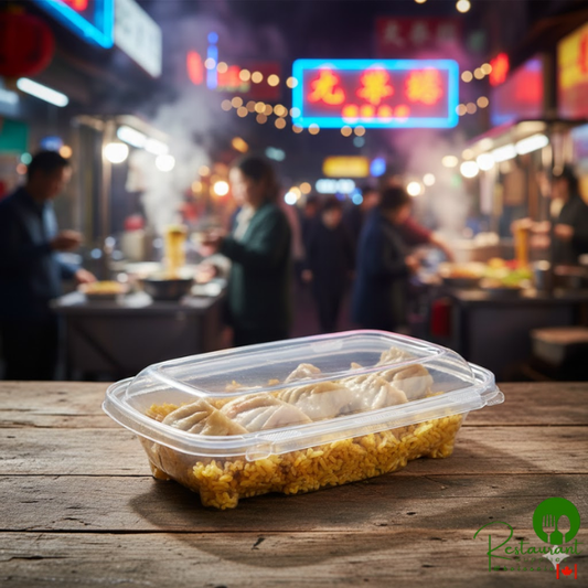 • Inline Plastics Safe-T-Chef 24 oz. Tamper-Resistant, Tamper-Evident Rectangular Hinged Container with Dome Lid - 136/Case