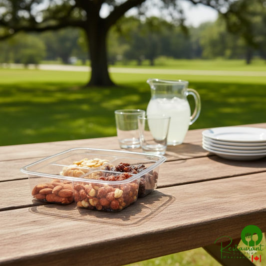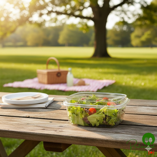 • Inline Plastics Safe-T-Fresh 24 oz. Tamper-Resistant, Tamper-Evident Square Hinged Container with Flat Lid - 264/Case