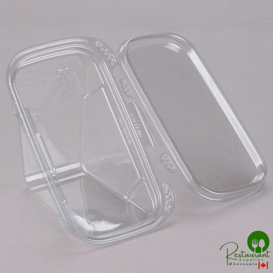 • Placon 9" x 5" x 3" Tamper-Evident, Tamper-Resistant Recycled PET Hoagie Clear Takeout Container and Lid - 100/Case