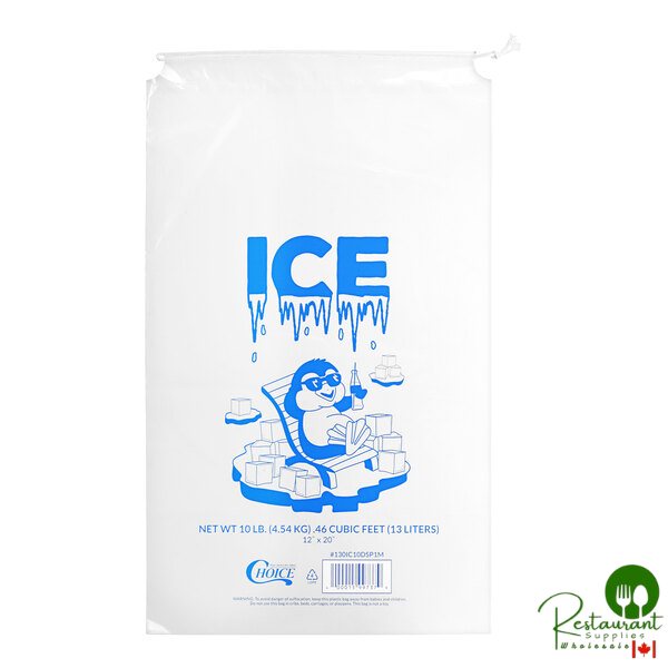 This Prime 10 lb. clear plastic drawstring ice bag with distinctive ice print offers the perfect bagging solution for convenience stores, grocery retailers, cold food processing facilities, and beer distribution centers. Engineered with commercial durability in mind, it combines practical functionality with professional-grade construction.