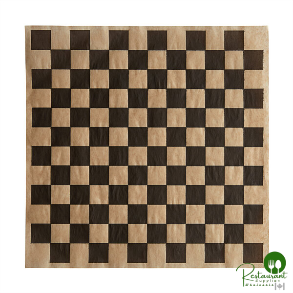 Ideal for wrapping sandwiches, burgers, hot dogs, and bratwursts. Perfect for lining serving baskets, creating attractive platter presentations, or packaging individual meals. The unique combination of natural kraft paper with black check pattern offers a rustic yet sophisticated look suitable for gastropubs, artisanal delis, food trucks, and venues seeking a distinctive, contemporary aesthetic. The standard 12" x 12" size ensures easy handling and consistent presentation for various food service applications.