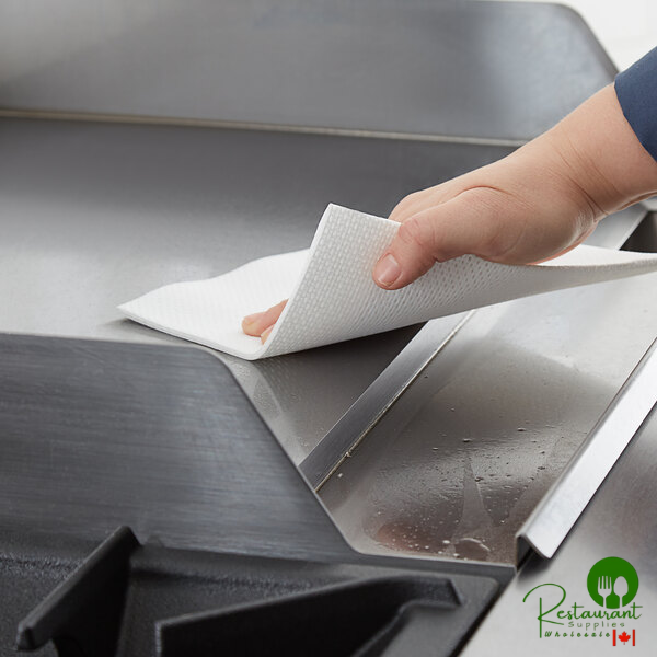 Engineered for demanding environments, the Prime 13½" x 15" heavy-duty wiper delivers exceptional strength and absorbency for tackling tough messes in foodservice and industrial settings. This professional-grade wiper offers a superior alternative to cloth rags with its robust construction and efficient cleaning capabilities.