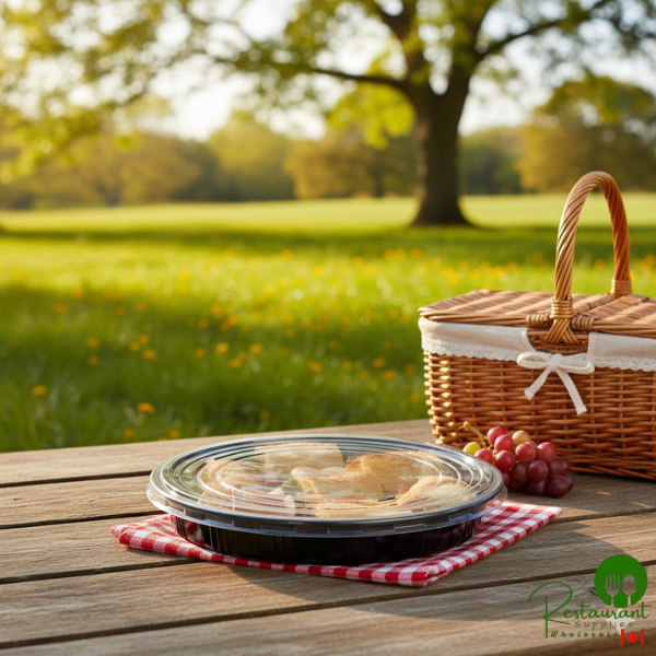 This Prime round catering tray offers a practical solution for food packaging needs. The stackable design saves storage space while the recyclable polystyrene construction provides durability and environmental responsibility.