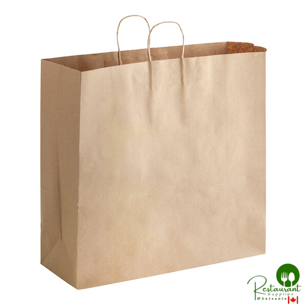 Package your purchases with premium quality using this Prime 18" × 7" × 18¾" natural kraft paper shopping bag! Designed for both substantial capacity and elegant presentation, this tall extra-large bag features sturdy paper handles that make carrying larger items simple and comfortable for your customers.