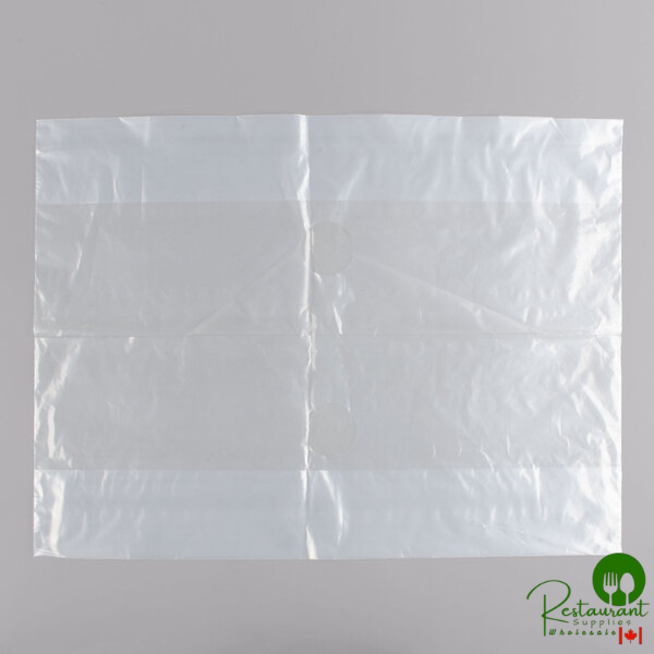Carry catering trays quickly and easily with this 18" x 7" x 24 1/2" catering tray bag! This bag is made of low-density polyethylene (LDPE) material with die-cut handles for dependable lifting and carrying. Dual side gussets enable the bag to expand to hold multiple tray configurations. The durable 2 mil construction resists ripping, tearing, and leaking.