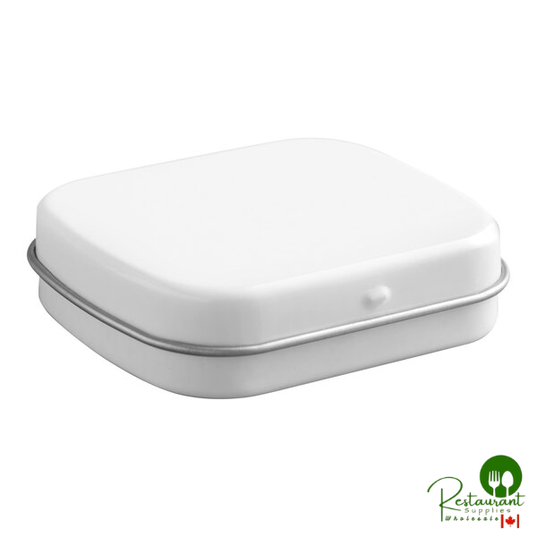 This versatile and sleek white rectangular tin with hinged lid is perfect for storing spices, loose leaf tea, body care products, wax, inks, and more. Crafted from durable metal with a convenient hinged cover, this container combines reliability with easy access.