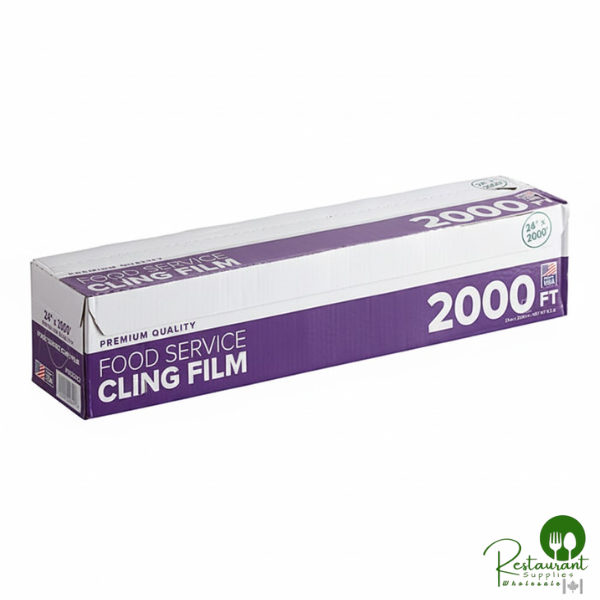 Designed for high-volume operations, this 24-inch wide foodservice film provides exceptional coverage for large platters, catering trays, and bulk food storage. The generous 2,000-foot length ensures extended service life, reducing changeover frequency and maintaining workflow efficiency in busy commercial kitchens.