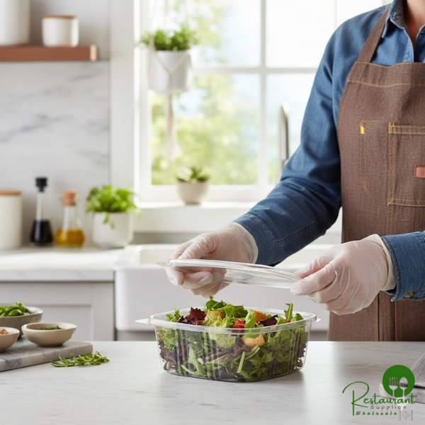 The clear design provides excellent product visibility, making your food items look more appealing while the hinged design offers convenient access. Perfect for deli counters, take-out services, and food displays.
