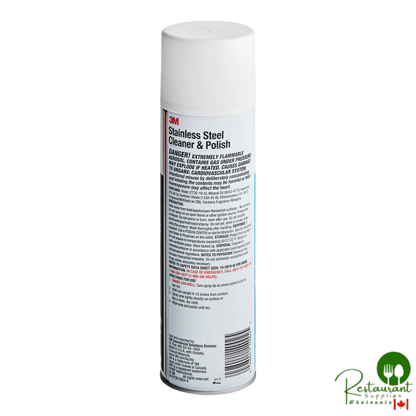 Keep stainless steel, chrome, laminated plastics, aluminum, and a variety of other metal surfaces clean and polished to an attractive sheen for years to come with this 3M 14002 stainless steel / metal cleaner and polish! Sold in a 21 oz. aerosol container that efficiently cleans and polishes in a single step, this formula cleans surfaces before leaving a light protective film that masks blemishes, slows resoiling, and resists fingerprints.