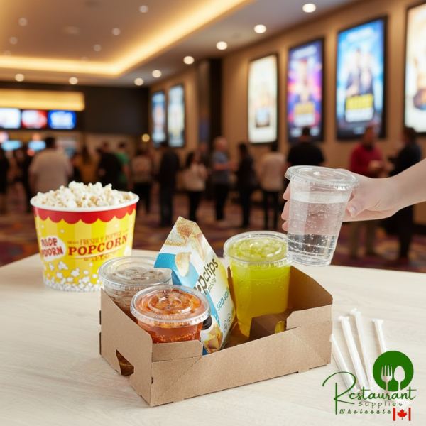 Four corner cup holders leave central space for food items, snacks, or other products. Perfect for cafes, restaurants, mobile trucks, and food service establishments.