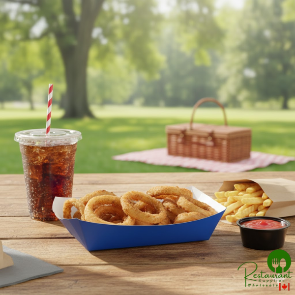 Versatile Applications: Ideal for concession stands, food trucks, stadiums, fairs, family restaurants, catering events, and any food service operation needing reliable, disposable trays with generous capacity and appealing blue presentation.