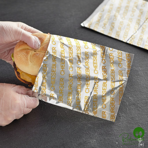 Optimize your fast food service with these Prime 6" x 1⅛" x 6½" large cheeseburger bags. Perfect for snack bars, concession stands, and food trucks, these bags combine functional design with nostalgic appeal for enhanced customer experience.