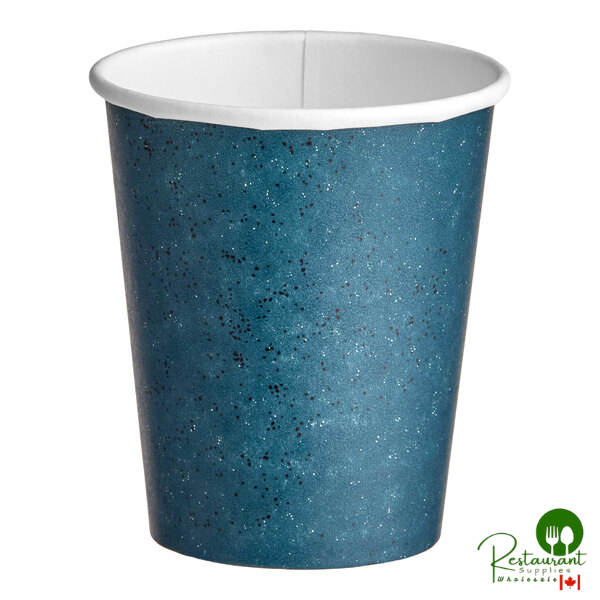 This Prime hot cup features a vibrant blue speckle design that adds a touch of fun to your drink presentation. The poly-coated interior lining protects the cup from weakening while ensuring a comfortable grip for customers.