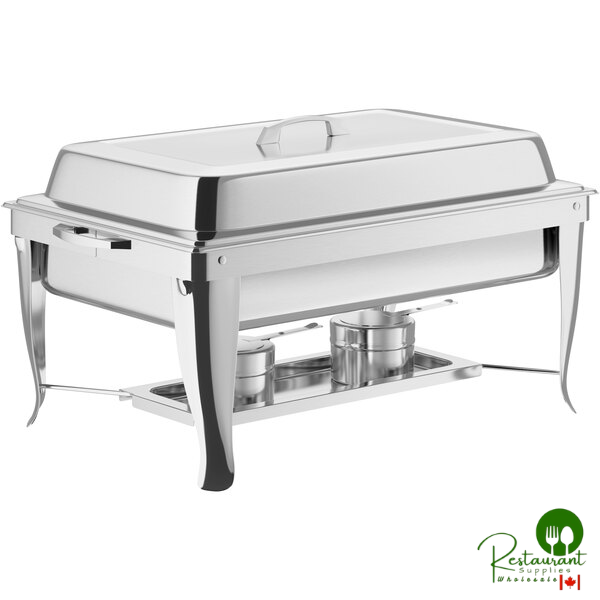 Featuring a complete stainless steel design across the frame, pans, lid, and handle, this chafer delivers a high-end appearance with superior durability. The innovative leg construction provides enhanced stability compared to traditional folding chafers, while the collapsible design optimizes storage space and simplifies transportation between events.
