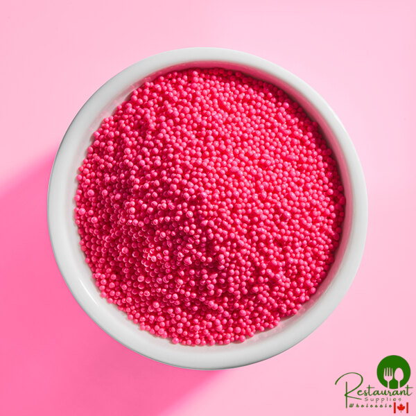 Put the finishing touch on all of your desserts with a burst of color from these Adourne Expressions pink nonpareils! Similar to sprinkles but with a slightly more brittle texture, these tiny, round confections add a pop of color and a subtly sugary flavor to any sweet dish.