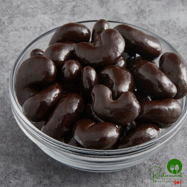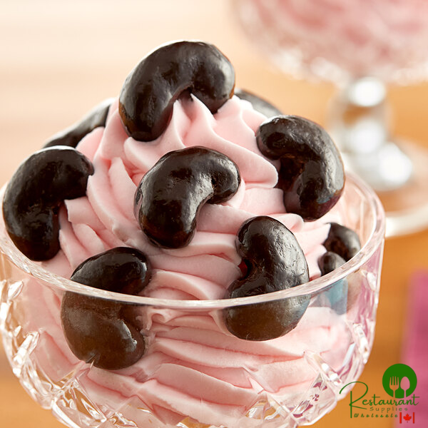 Offer a sweet, crunchy snack with Albanese dark chocolate covered cashews! These cashews are perfectly roasted, then dipped in a coating of smooth dark chocolate to create a deliciously sweet and crunchy treat. Use these decadent morsels as a topping for your signature baked goods in your bakery or sweet shop! They also make a delicious finishing touch for ice cream, gelato, frozen yogurt, and other treats. Offer them at your self-serve dessert topping station or use them as an inclusion in house-made ice cream! These chocolate covered cashews make a delicious addition to sweet-and-salty trail mix, or you can repack them into individual portions to merchandise in your snack aisle or checkout area to promote impulse purchases.